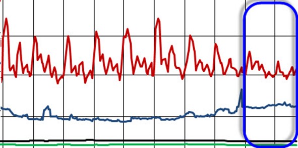 The downside of an operating account is volatility. Large daily swings in balances place stress on a bank’s liquidity and limit the amount of funds a bank can invest in longer-duration investments. The image below shows the volatility of checking (top in red), money market accounts (blue), time deposits (black), and savings (green).
